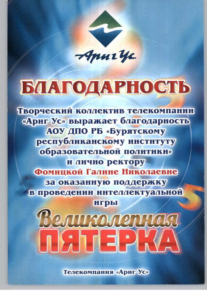 БУРЯТСКИЙ РЕСПУБЛИКАНСКИЙ ИНСТИТУТ ОБРАЗОВАТЕЛЬНОЙ ПОЛИТИКИ